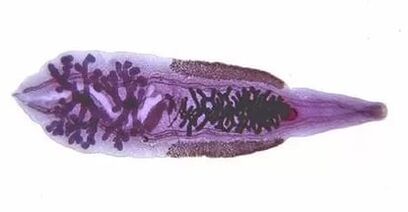 Koshachi or Siberian bicari - a small parasite of lanacole from the liver suckers.Disease -causing agent opisthorkhoz.In the length of the feline bicarry, it reaches 8-18 millimeters, width -1.2-2 mm.The parasite develops in the organisms of the two owners - intermediate and final.The intermediate host is molluscs and carp fish, the final is a man.